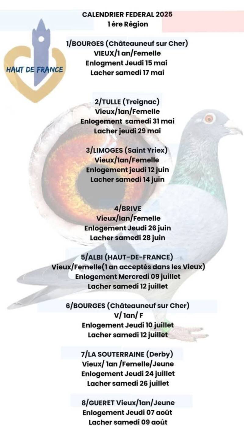 et la liste des pigeons vaccinés afin de participer aux concours